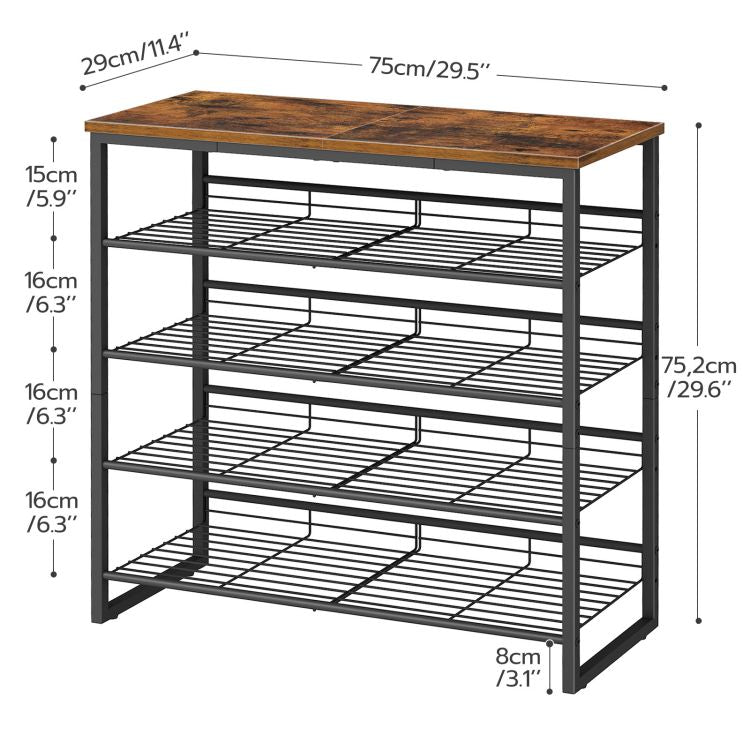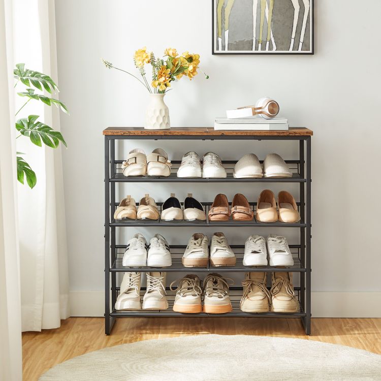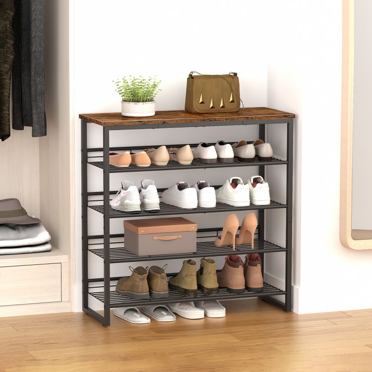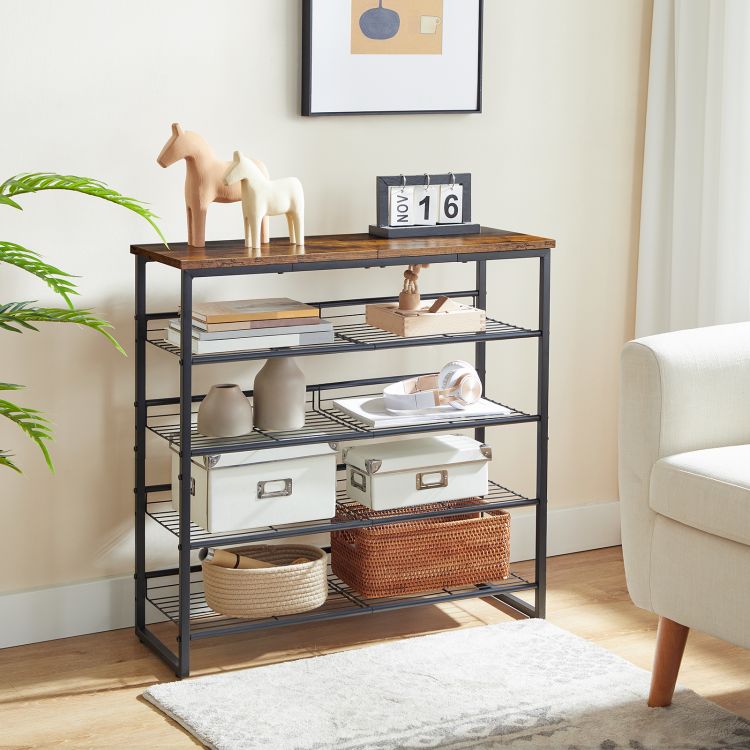 HOOBRO Schuhregal, 5-lagiger Schuhschrank, verstellbare Schuhablage, flach oder neigbar, für 12-16 Paar, stabil, für Eingang, Flur, Wohnzimmer, Schlafzimmer, Vintage